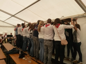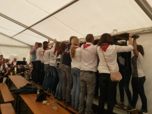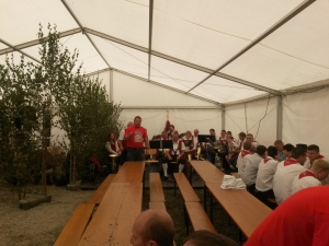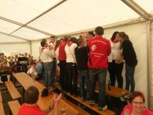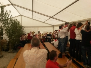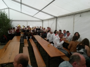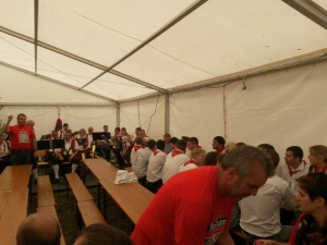 K e r w a - M o n d o c h Mondoch wor wie immer ab neina Frühschoppn im SVU-Zelt mit a bor vo der Sunnernäher Trachtnkapelln.