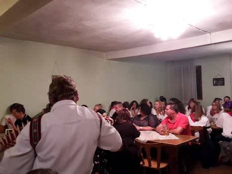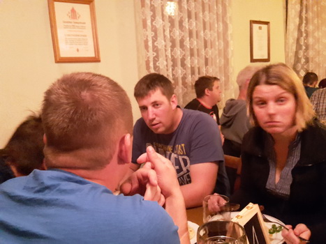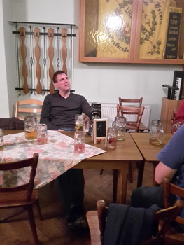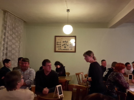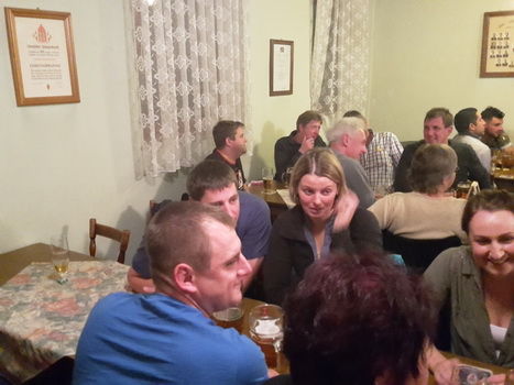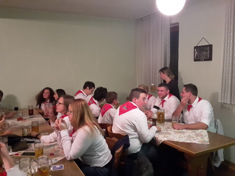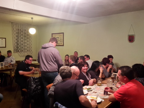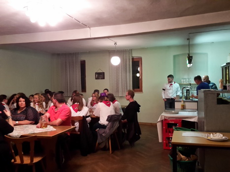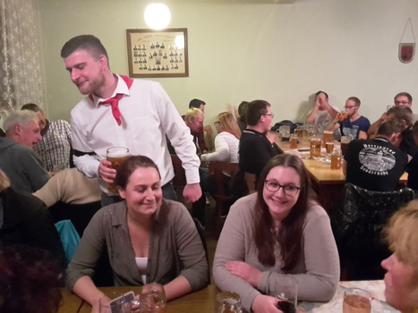 Ruckzuck wor der Saal heier wieder voll. A Bier, a Musi, Holadrio! Do gfällts uns. Der Kerwa-Veteran hängt a nu recht an der Liesl.