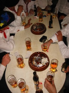 Wer zuviel gsoffen hat und nur am Frühschoppen ist, weil er aus dem Bett gefallen ist, der hats schwer.