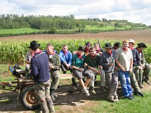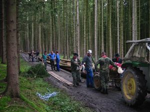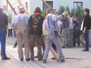 Am Kerwasamsdoch wern frie die Birkn am Griecherdenkmol zugschniedn und aufgstellt, na nu a bor organisatorische Sachen erledigt und na gehts ins Kerwabamholn.