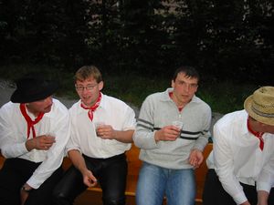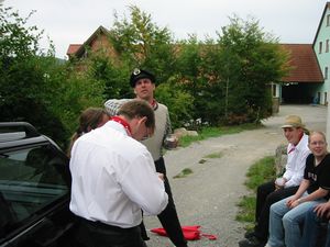 Am Kerwasunndoch werd frie um achta ugfangt, di Bulldäg und di Wägn für'n Umzug zu schmückn. Do wern di buntn Bänder an die Bulldäg klebt, Birken wern überoll hiegsteckt und wos halt so alles zu an scheena Umzug derzukerrt. Of jeden Fall gibt's jeds Johr nu a Haufn zu do und mir wern grod immer bis zum Umzug ferti.